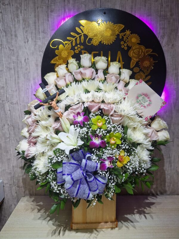 Ramo funebre en abanico de rosas