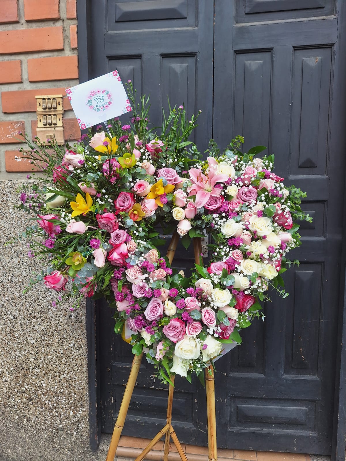 Funebre en forma de corazon, en tonos pasteles rosado!