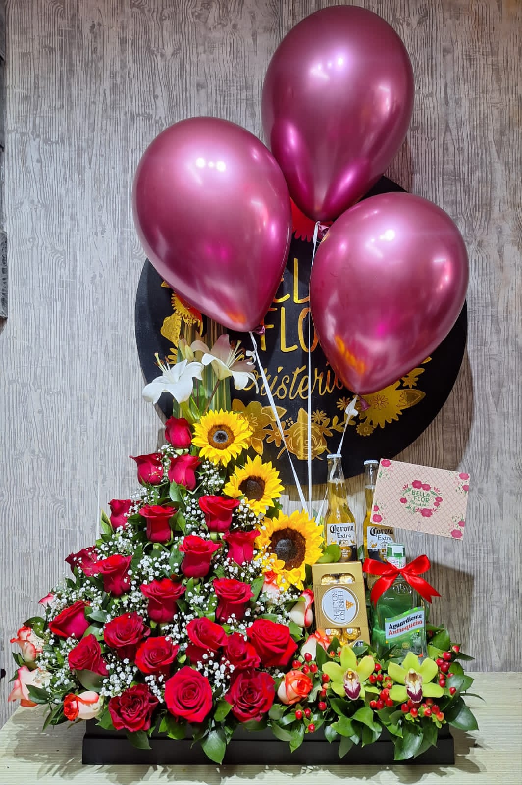 Ramo grande con guaro verde , coronitas y ferrero!